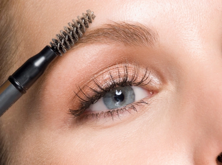 Далее переходим к самым ответственным зонам экспресс-макияжа – губам и бровям. Если густота последних позволяет, вы вполне можете обойтись прозрачным гелем, расчесав с ним брови специальной щеточкой. Если они редкие, воспользуйтесь карандашом или тенями в нужном тоне. С ресницами советуем отдать предпочтение туши в серых, коричневых или синих оттенках – они помогут создать эффект распахнутого взгляда минимальными усилиями.