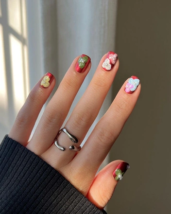Маникюр с гиперреалистичными цветами, животными и другими природными мотивами старит руки так же, как это делает неухоженная кожа кистей. Подобные дизайны давно вышли из моды, а на смену им пришли более лаконичные нейл-арты без множества мелких деталей. Попросите мастера нарисовать минималистичные рисунки, например, ромашки или абстрактные волны, которые дополнят однотонное покрытие.