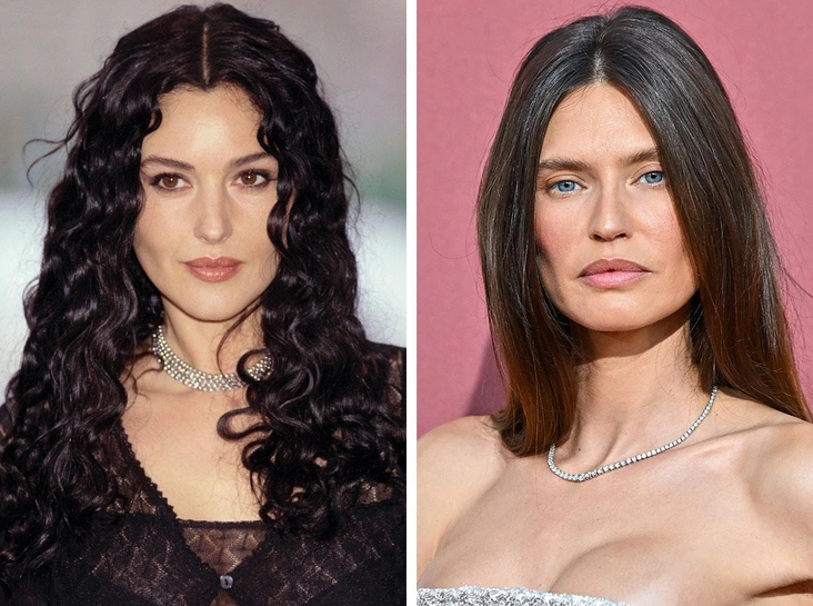 Первый образ, который можно посоветовать, — знаменитое каре Моники Беллуччи из фильма «Малена». Это прическа средней длины, темного оттенка, с крупными завитками и боковым пробором. Она придает лицу мягкость и утонченность, а также создает объем, который подчеркивает элегантность всего образа. Длина может быть как до плеч, так и чуть ниже — обе версии смотрятся потрясающе женственно и эффектно (читайте также: Самые модные прически осени и зимы 2024/25).
