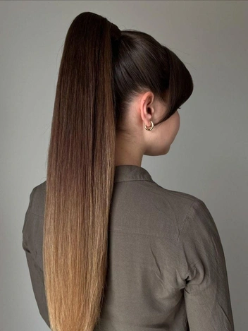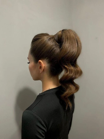 Высокий хвост — это еще один образ, который подчеркивает итальянскую утонченность и стиль. Такой хвост, зачесанный гладко назад, придает строгий и элегантный вид. Для более драматичного эффекта можно завить концы хвоста, что добавит объема и легкого ретро-шарма.