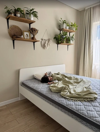 Вечером — снижение яркости. Теплый приглушенный свет в доме и минимальное количество экранного свечения помогают мозгу перестраивать ритм мелатонина естественным образом. Даже небольшие изменения в световом окружении ускоряют возвращение нормального сна.