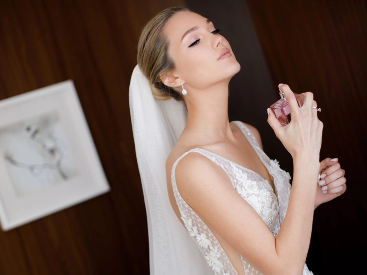 Наносите аромат за некоторое время до торжества, чтобы не испортить свадебный наряд