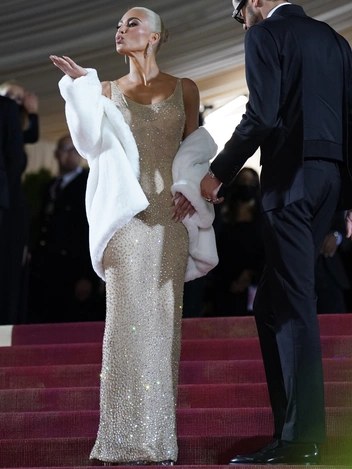 Американская звезда обратилась не к «позолоченному» веку, а к старому Голливуду и образу Мэрилин Монро. И надела самое известное платье актрисы. Ровно через 60 лет после того, как Монро появилась в облегающем платье телесного цвета, которое создавало эффект нагого тела, и спела Happy Birthday Mr. Presiden Джону Кеннеди, Ким вернула к жизни культовый наряд, став единственным человеком, которому довелось надеть его после Мэрилин. Как сообщает New York Post, вечерний туалет, украшенный более чем 6000 вышитыми вручную кристаллами в настоящее время оценивается в более чем 10 миллионов долларов (читайте также: Королева соблазна: история самого скандального «голого» платья Мэрилин Монро, которое теперь носит Ким Кардашьян).