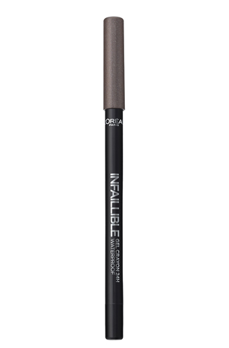 2. Макияж глаз следует начинать с карандаша черного или кофейного оттенка Infaillible Gel Crayon, которым необходимо проработать ресничный контур и слизистую нижнего века. Далее используйте бронзовый оттенок из палетки теней Color Riche Quadro, качественно растушевывая его по всему подвижному веку. Более темный коричневый оттенок положите в складку века и немного «вытяните» за пределы внешнего уголка глаза, делая тем самым взгляд более «распахнутым». В качестве завершающего штриха макияжа глаз прокрасьте ресницы тушью для объема VML Fatale.