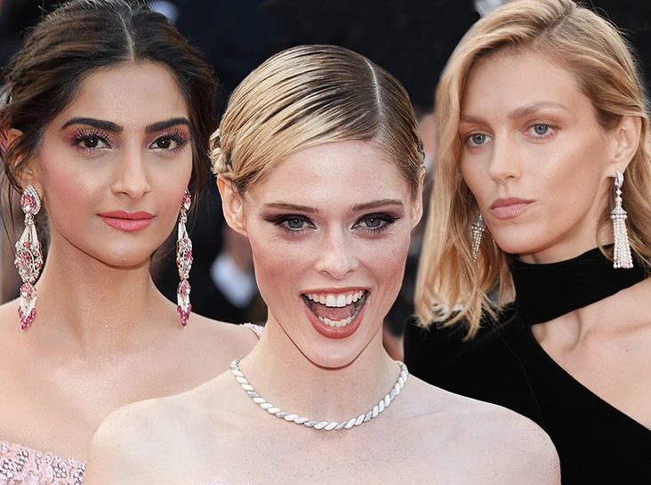 28-летняя канадка обожает стрелки, и не стала изменять своим предпочтениям. В Каннах она появилась с выразительными глазами, акцент на которые уравновесила хоть и плотная, но нейтральная помада. Мы хотели покритиковать смесь шоколада и графита, который Коко выбрала для смоки – кажется, что этот микс не только спорит с мощными стрелками, но даже «забивает» пронзительный зеленый цвет глаз модели, однако, не будем: с забавным плетением на чуть «пергидрольных» волосах с отросшими корнями и стайлингом а-ля «некогда голову было вымыть» (что вы хотите – молодая мама!) образ получился вполне органичным – романтично-гранжевым (наряд от George Hobeika ─ коллекция SS 17 ─ этому способствует).