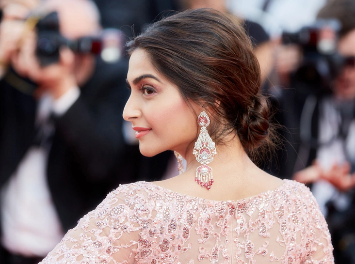 Индианка, которую уже называют новой Айшварией Рай, выбрала «лук» национальном стиле: платье нежного оттенка пыльной розы длинными струящимися рукавами напоминает традиционное сари, низкий пучок, в который стянуты волосы, вызывает трогательное умиление «восточностью» образа, а мейк-ап отсылает к лучшим образцам индийского кино. Грамотным контурингом визажисты выгодно подчеркнули точеный нос и скулы актрисы, миндалевидный разрез глаз еще больше удлинили с помощью матовой подводки, а губы (к слову сказать, не самой идеальной формы) сделали невероятно соблазнительными благодаря глянцевому покрытию сочного персикового оттенка. Отдельной похвалы заслуживает игра в макияже золота (оно, кстати, «рассыпалось» и в зоне декольте) и нежно-розового перламутра – кареглазым девушкам рекомендуем взять на заметку.