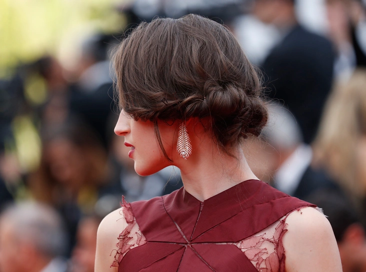 После пронизывающе «натурального» выхода польской звезды подиума на красную дорожку накануне (освежаем память и смотрим – «Канны-2017: лучшие beauty-образы 5-го дня кинофестиваля»), Аня, оставшись в рамках образа девушки Sain Laurent (оба туалета – и в 5-й, и в 6-й день), решила добавить красок. Визажисты четко проработали скулы модели средствами для контуринга, все-таки накрасили ресницы тушью и сделали акцент на помаде оттенка бордо, который вкупе с переливами зеленого цвета наряда заиграл на губах совершенно фантастически. Удлиненный шэг, уложенный пляжными волнами (отмечаем минимум стайлинга) стал удачной ноткой небрежности в этом богемном комплекте.