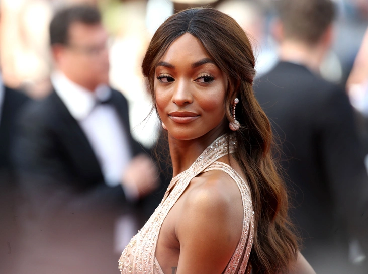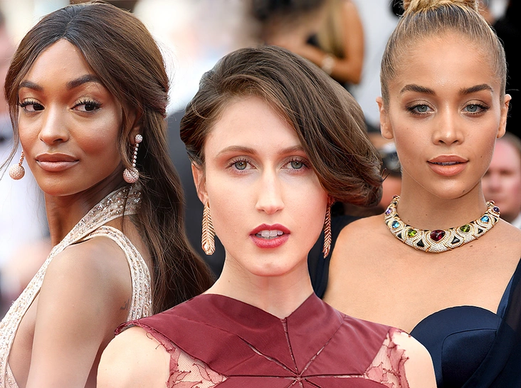 Знойная красотка тоже решила примерить на себя образ принцессы (на нынешнем фестивале их уже было предостаточно ─ примеры смотрим здесь «Модные Канны-2017: Элизабет Олсен, Айшвария Рай и другие красавицы вечера премьер 20 мая»), для чего подкрепила королевский наряд от Elie Saab роскошной укладкой в свободном стиле и драгоценным макияжем в золотой гамме. Главной его драгоценностью стали глаза: графичные стрелки и темная подводка по внутреннему нижнему веку (второе лучше практиковать только в том случае, если глаза у вас, как у Джордан – широко посаженные), роскошные смоки-айс из золота и бронзы и пышные ресницы (не обязательно наращивать – прокрасьте их 2-3 слоями объемной туши). Нас слегка смутило обилие хайлайтера на лице британской топ-модели, но если вы уже являетесь счастливой обладательница ровного красивого загара, смело экспериментируйте с блестками и перламутром. Чтобы не переборщить с насыщенностью макияжа, оттенок помады выбирайте максимально приближенный к натуральному цвету губ.