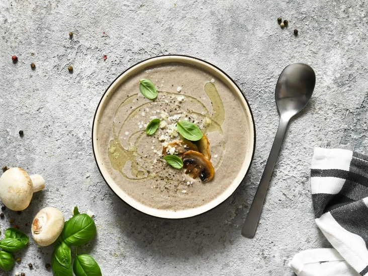 Ужин: тарелка овощного супа с небольшим кусочком цельнозернового хлеба