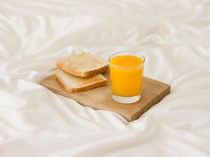 Перед сном: ломтик тоста и 1 стакан апельсинового сока