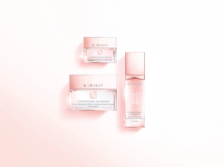 Традиционные геометрические крышки розовых кубических упаковок призывно отражают свет: сияние – главная фишка L'Intemporel Blossom. В комплексе – три средства, которые объединяет комплекс Blossom Glow, состоящий из трех эффективных ингредиентов (экстракт ангелики и ягод черного перца плюс производная витамина С). Он активизирует клеточную энергию кожи, делая тон лица свежим, сияющим и очень юным.