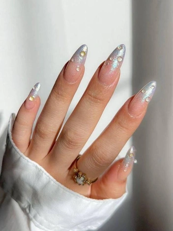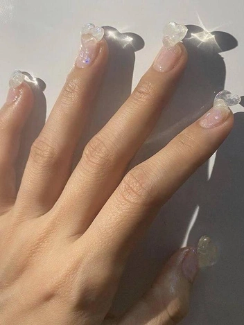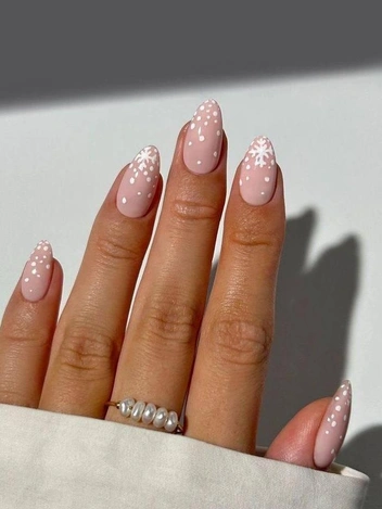 Минималистичный маникюр идеален для тех, кто не хочет рисовать снежные лавины на своих ногтях. На такой случай мастера предлагают оставить прозрачное покрытие с элементами мелких льдинок (читайте также: «Голые ногти»: 6 вариантов маникюра на Новый год-2025, если вы отказались от гель-лака).