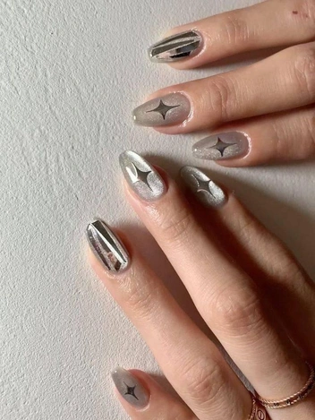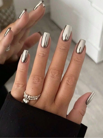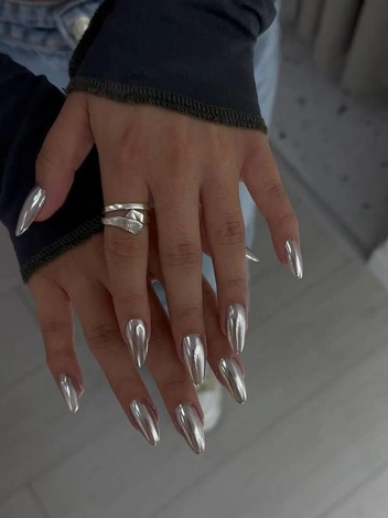 Серебристый хром, пожалуй, один из самых стильных маникюрных дизайнов. Подходит как для повседневных будней на работе, так и для праздничных дней. Отлично сочетается с украшениями.