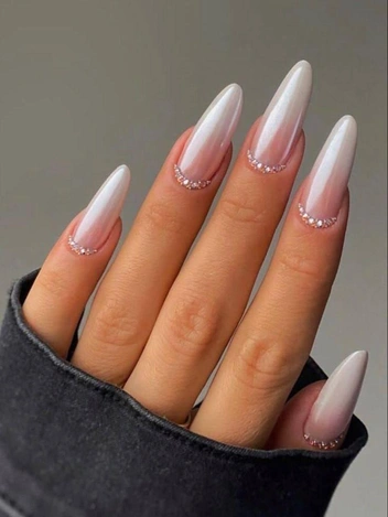 Да-да, кто-то ходит с кристаллами даже на ногтях! А все благодаря объемному маникюру в сочетании белого и голубого оттенков.