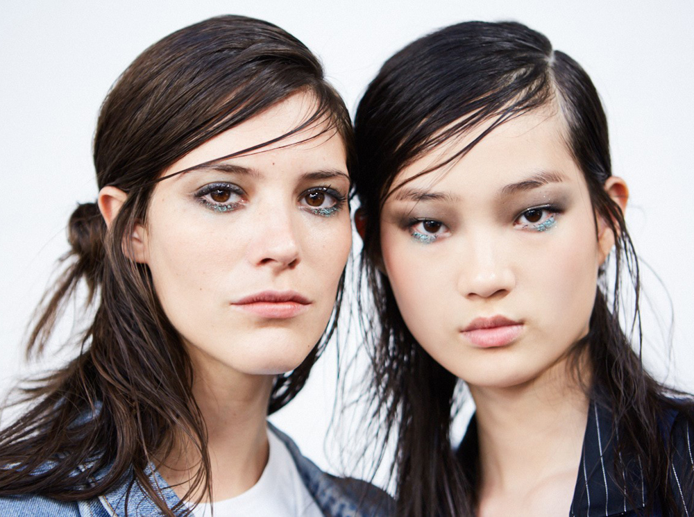 Брови оставьте в как можно более естественном состоянии (при желании можно воспользоваться фиксирующим гелем), а ресницы прокрасьте большим количеством туши Eyes To Kill Classico (2 и более слоев), чтобы создать в прямом смысле «неуклюжие» неряшливые ресницы. Затем по линии верхнего века нанесите жидкие тени Eye Tint (оттенок №1 Obsidian). Действуйте кисточкой очень легко, проводя слева направо – линия должна быть «прикидочной». Воспользуйтесь черным карандашом для глаз Smooth Silk Eye Pencil, чтобы провести плотную линию вдоль линии роста ресниц. Не бойтесь пересекаться с контуром теней (или наоборот, не доходить до него): то, что в итоге у вас получится, должно укладываться в определение «вид после ночной вечеринки»).Таким же «неаккуратным» способом по линии нижнего века нанесите тени Eye Tint нового оттенка Acqua (при желании концентрируйте цвет по центру глаза).