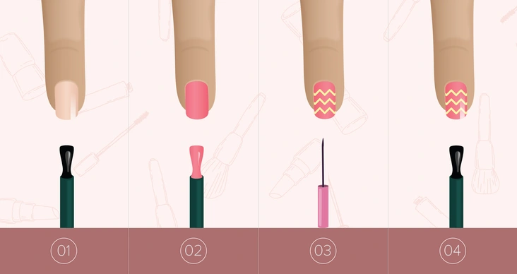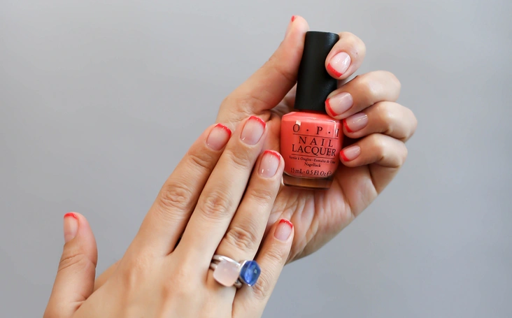 Попробуйте сделать френч, проведя 2 ровных полоски на кончиках ногтей. Чем контрастнее оттенки, тем лучше эффект. Или сделайте диагональные полоски, имитируя на кончиках ногтей линию «улыбки». После высыхания лака покройте маникюр глянцевым или матовым топом.