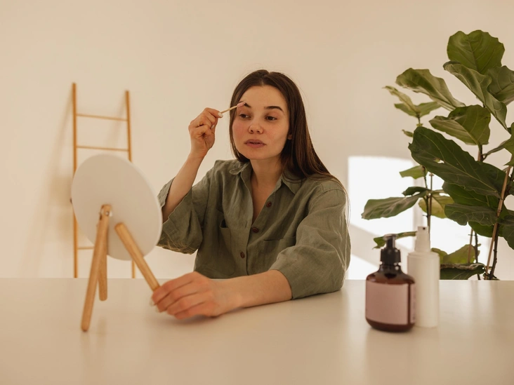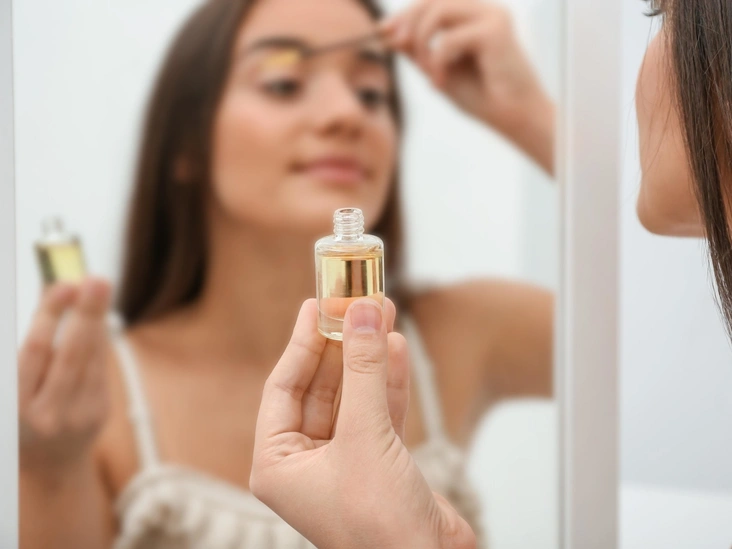Что касается бровей, их также можно обрабатывать касторовым маслом, чтобы добиться густоты и блеска. Однако это процедура не на всю ночь, как в случае ресниц. Обмакните щеточку для бровей или ватную палочку в небольшое количество касторового масла, чтобы не образовывалось капель, и обработайте ею брови, двигаясь от середины лица к краю. Если образуются излишки, их лучше убрать салфеткой, чтобы капли не стекали к глазам. Оставлять масло на ночь не рекомендуется, чтобы избежать отека, — лучше смыть остатки масла после того, как оно впитается в брови. И проводить сеанс лучше днем или хотя бы за четыре часа до сна.