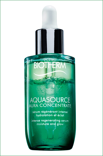 Новая увлажняющая сыворотка для сияния кожи. Быстрое интенсивное увлажнение до 24 часов даже для чувствительной кожи (90% натуральных ингредиентов в составе). С флаконом нужно поработать по принципу шейкера: прежде всего, встряхнуть, чтобы активировать двухфазную формулу. Средняя цена: 3700 руб.Концентрат Aquasource Aura Concentrate, Biotherm