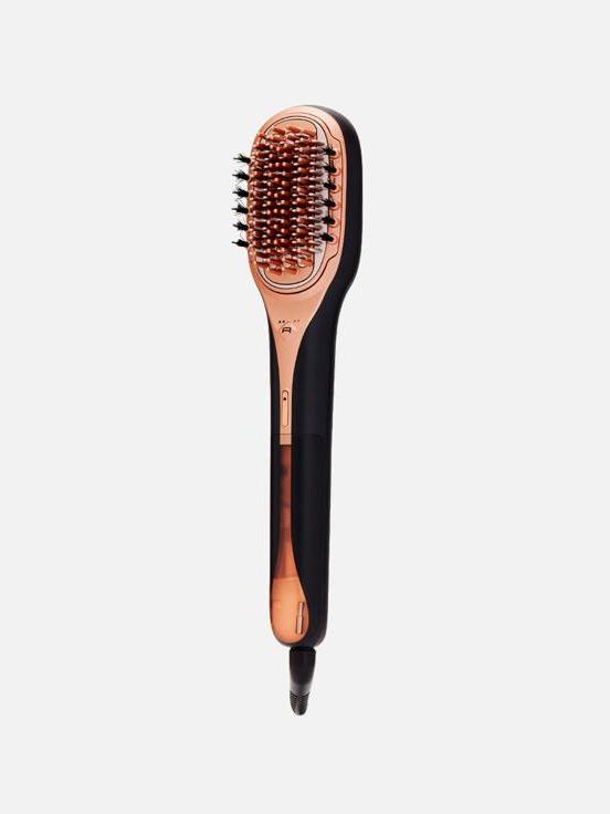 Гаджет с функцией пара помогает восстановить поврежденные волосы, запечатывая чешуйки и придавая локонам ухоженный вид. Кератиновое покрытие щетки в сочетании с натуральной щетиной делают волосы более гладкими и послушными.