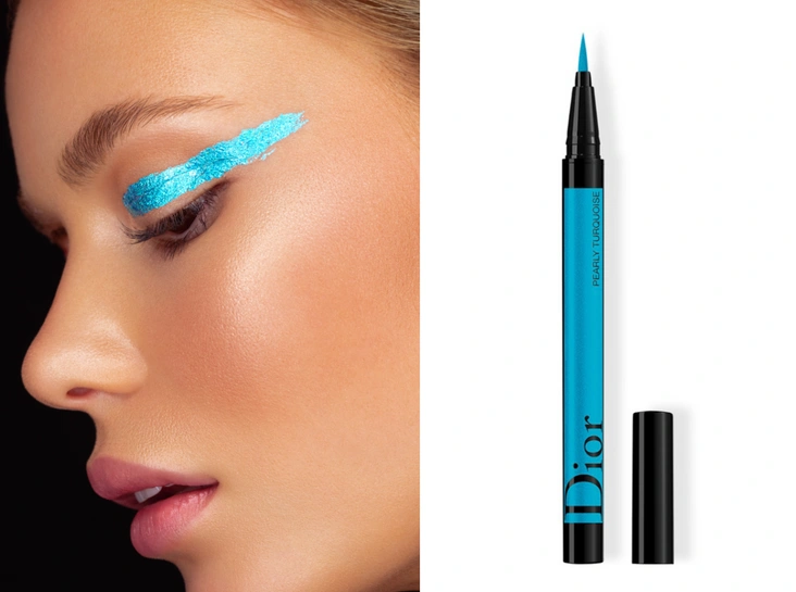 Оттенки синего — всегда отличное решение не только для круизного бьюти-образа, но и для летнего городского макияжа на каждый день. Для креативного макияжа, который порадует насыщенностью и аккуратностью, идеально подойдет лайнер Diorshow On Stage Liner, оттенок № 351 Pearly Turquoise. Благодаря гибкому фетровому аппликатору с ним легко нарисовать четкую — тонкую или интенсивную — линию. Стойкость обеспечивает специальная формула средства, которая сохраняет макияж на лице до 24 часов.