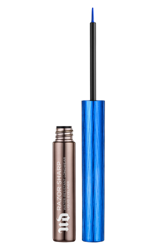 - Чуть выше синего оттенка проходимся жидкой подводкой Razor Sharp в оттенке Bump, а по нижнему веку растушевываем стойкую помаду Vice Liquid Lipstick (оттенок 714).