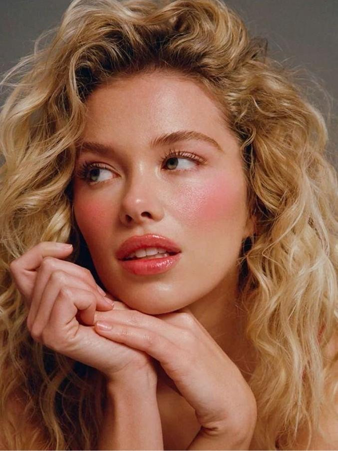 Щеки. Нейтральный румянец в теплой или нейтральной гамме, лучше без сильного розового подтона, чтобы не «бороться» с красной помадой.