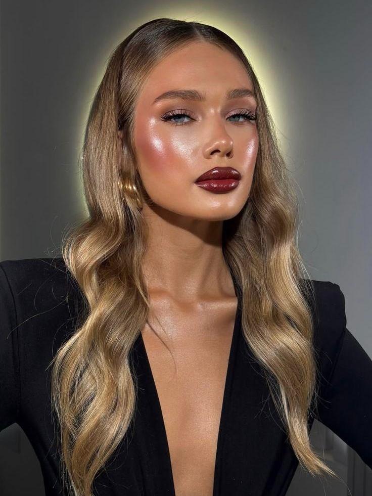 Кожа. Тон с хорошим выравниванием, но без маски: тонкий слой и точечная коррекция. Легкий контуринг или бронзер, чтобы сохранить объем лица. Пудра на T-зоне, скулы можно оставить чуть более живыми.