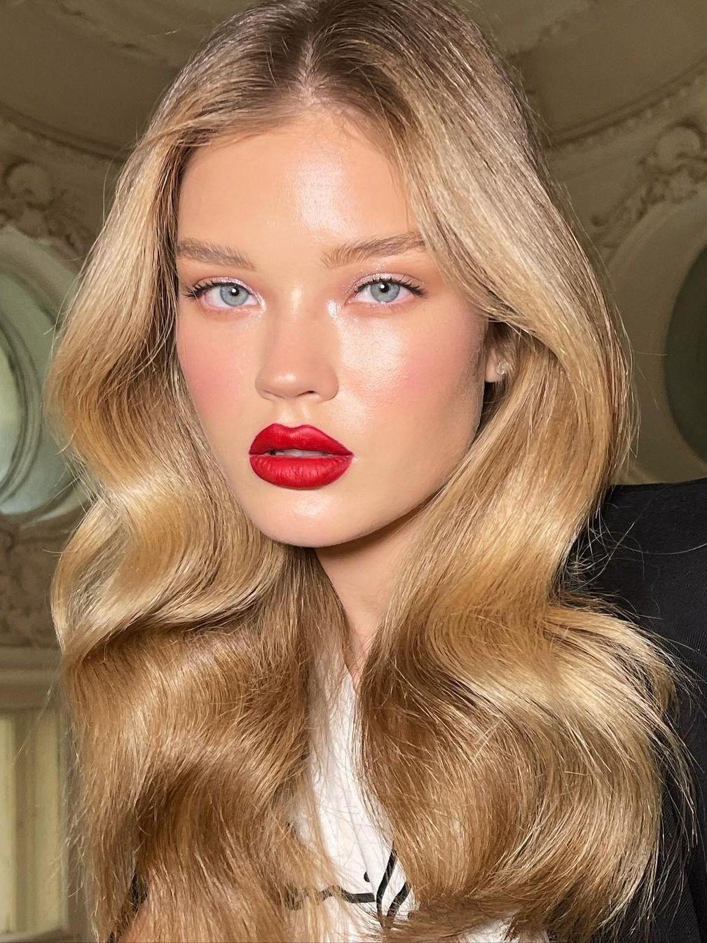 Если вам хочется, чтобы макияж стал частью общего настроения вечера и задал более уверенный, собранный тон, красная помада и графичная стрелка — надежная схема. Она подходит для ресторанов, спектаклей, вечеринок и форматов, где уместен более нарядный образ.