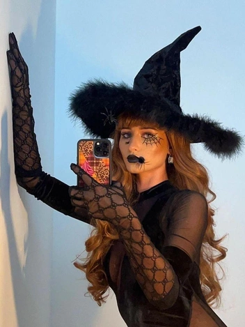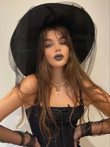 Такой макияж ведьмы на Хэллоуин для девушек сочетается с кружевом, шляпами и готическими аксессуарами.