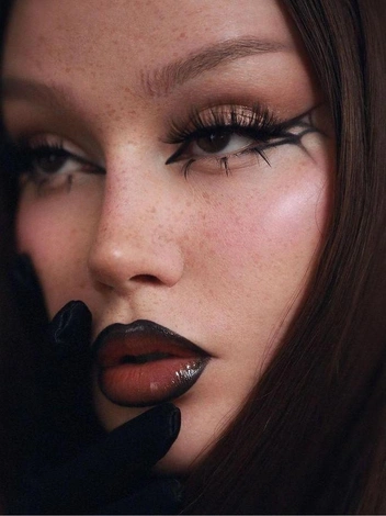 Этот макияж на Хэллоуин подойдет тем, кто предпочитает классические темные образы без излишнего грима. Глубокие тени и насыщенные губы создают мягкий контраст и придают взгляду загадочность. Макияж на Хэллоуин для девушек в этом стиле можно сделать самостоятельно, используя обычную косметику.