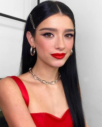 Бессменная классика, которая говорит сама за себя. Только помните, что это единственные акценты, не стоит добавлять к макияжу блестки, накладные ресницы и так далее. Можно добавить скульптор на скулы и веки. Такой вариант уместен только с черным или белым платьем.