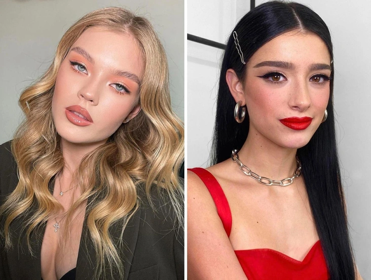 На губы подберите карандаш на тон или два темнее вашего натурального оттенка, прорисуйте контур и растушуйте ближе к центру губ. В центр можно добавить помаду более яркого или светлого оттенка, для того чтобы сделать губы более объемными. Этот вариант идеально подойдет к фактурным платьям сдержанных оттенков (читайте также: Так уже не модно: 5 главных антитрендов макияжа весны и лета 2023).