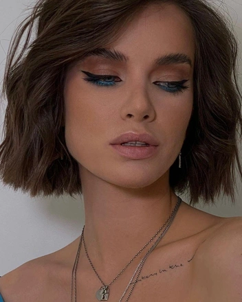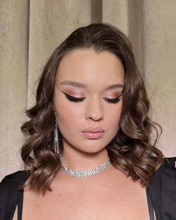 Если вы хотите добавить взгляду томности, то этот макияж точно для вас! Нужно прокрасить верхнюю и нижнюю слизистую каялом и прорисовать стрелку только на внешнем уголке глаза, далее вытянуть ее к виску. Если ваше платье в светлых тонах, советую использовать темно-коричневый карандаш, для темных оттенков платья идеально подойдет черный. Добавьте хайлайтер на внутренний угол глаза и оттяните до середины века. Готово — идеальный баланс во взгляде.