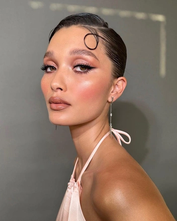 На данный момент, это один из самых популярных макияжей. Чтобы добиться эффекта сияния на коже, вам следует использовать преимущественно кремовые текстуры. Например, после нанесения тона, сделайте коррекцию скульптором и добавьте на щеки и веки (прямо под бровь) жидкие румяна.