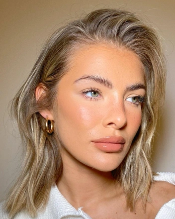 На веки можно нанести кремовые или сухие тени с легким шиммером, а в складку — коричневый пигмент. По желанию вы также можете нарисовать стрелку, чтобы подчеркнуть взгляд и вытянуть форму глаз. Еще один вариант — межресничная стрелка для визуально более густых ресниц.