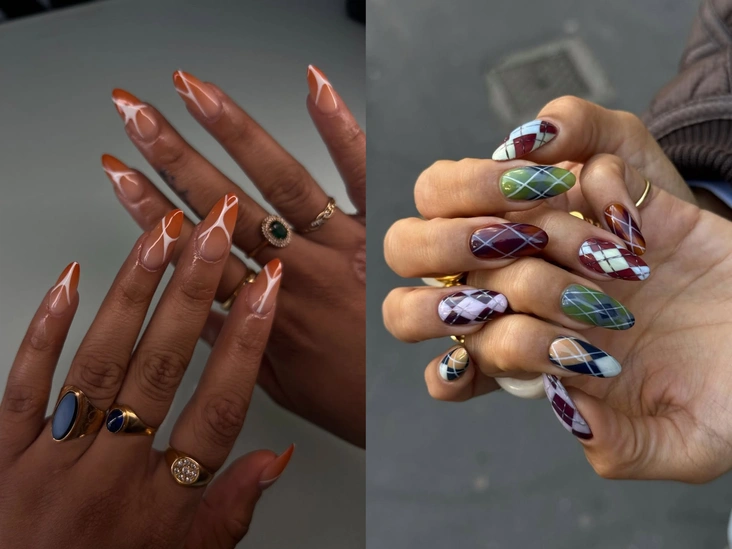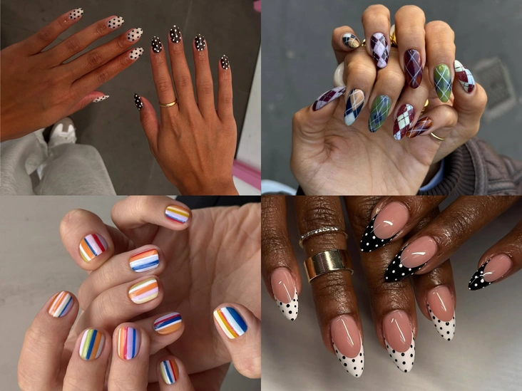 Удивительно, но одной одеждой ограничиваться мы не будем, так что готовьтесь к нашествию принтов и в маникюре. Расставляйте контрастные точки на френче, рисуйте разноцветные полосы и имитируйте тартан или аргайл прямо на ногтях — главное, чтобы ваш дизайн точно повторял привычные рисунки для ткани.