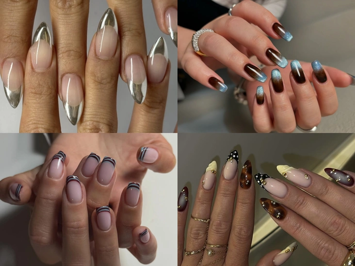 Носите французский маникюр с любым из трендов, которые мы уже перечислили (особенно с горошком и клеткой), клейте стразы и бусины прямо на него, дополняйте полосками зебры и тигра или расставляйте на нем золотые акценты. Еще один необычный вариант вы можете заметить на фото выше — там френч создали с помощью контрастных оттенков лака «кошачий глаз».