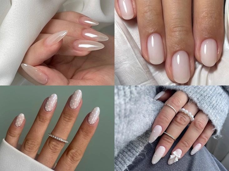 Используем его в моно-варианте и во всевозможных сочетаниях. Совмещаем молочный с модой на полька-дот и добавляем на ногти белый горошек, клеим трендовые стразы (см. следующий пункт) или прибегаем к классике последних лет — жемчужной втирке.