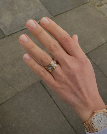 Перед нанесением лака нанесите базу, которая немного выровняет ноготь. Важно выбрать качественный лак, который не будет полосить и самостоятельно выровняется на ногте. Нанесите два слоя лака. После — топ, так как главная фишка маникюра «богатой девушки» — эффект отполированных, гладких ногтей с красивым бликом. Если у вас не получилось аккуратно прокрасить ногти, сотрите излишки тонкой кистью или специальной палочкой, пропитанной жидкостью для снятия лака (читайте также: 16 фактов, которые вы должны знать о маникюре).