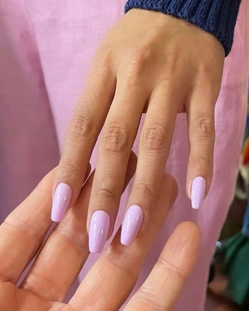 Любимый нейл-мастер звезды Том Бачик опубликовал в своих соцсетях снимок с рукой Селены. На нем можно разглядеть новый потрясающий оттенок ее ногтей — нежно-сиреневый, будто лавандовое молоко.