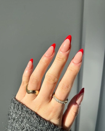 Красный — однозначно цвет этой осени, который покорил сердца модных инфлюенсеров. Мы предлагаем добавить ярких оттенков не только в одежду и макияж, но и на ногти. Но вместо классического однотонного маникюра, присмотритесь к более необычному, но сдержанному варианту — красному френчу. Помимо стандартного французского маникюра можно также сделать асимметричный, двойной или микро-френч.