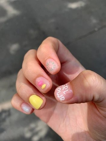 Нечеткие контуры, разводы, надписи от руки, хаотичные мазки, разный цвет ногтей — тренд на «неидеальность» продолжает поддерживаться мировыми нейл-мастерами и инфлюенсерами (читайте также: 7 трендов маникюра на весну и лето 2023 — от ногтей-леденцов до горошка). Достаем остатки бунтарского духа и впускаем его в свой маникюр. Но помните, что небрежность хороша в дизайне, но не в состоянии ногтей и кутикулы: не забывайте ухаживать за кожей рук с помощью кремов и масел.