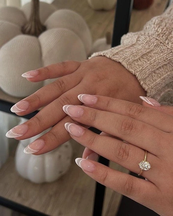 Французский маникюр идеально сочетается с ногтями овальной формы. Однако вместо классического или однотонного френча мы советуем сделать креативный дизайн. В этом нейл-арте важен баланс, поэтому в качестве основы лучше использовать нюдовыу оттенки. Попросите мастера нарисовать на свободном крае разводы или узоры — такой маникюр точно соберет множество комплиментов и не оставит руки незамеченными.