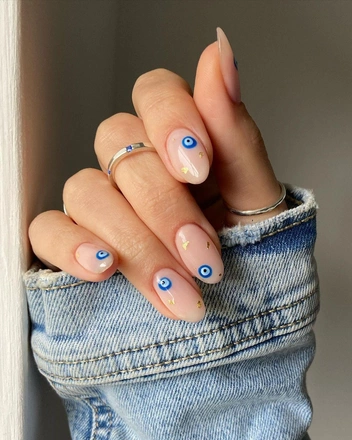 Любителям минимализма понравится маникюр с небольшими, но яркими акцентами. Рисунки могут быть любыми: от мелких цветов и синего глаза до геометричного узора по краю ногтя. Не бойтесь экспериментов и попробуйте сочетать между собой яркие и контрастные цвета: осенью часто не хватает красок, а маникюр — отличный способ поднять себе настроение.