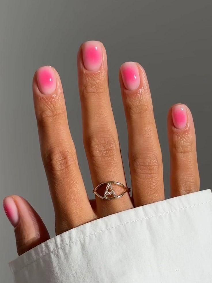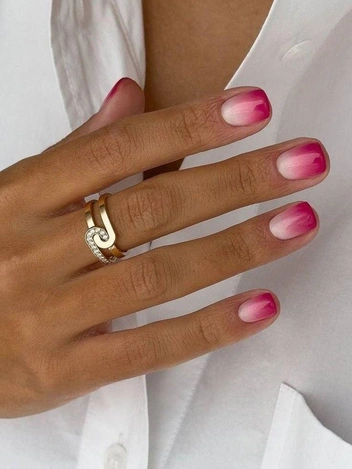 Градиент можно сделать двумя способами. Первый — внутри одного ногтя: у кутикулы более светлый розовый или почти молочный, к свободному краю оттенок постепенно становится насыщеннее. Второй — по всей руке: от самого светлого тона на большом пальце до более глубокого розового на мизинце (читайте также: 10 нюдовых помад, которые делают губы как после поцелуя).