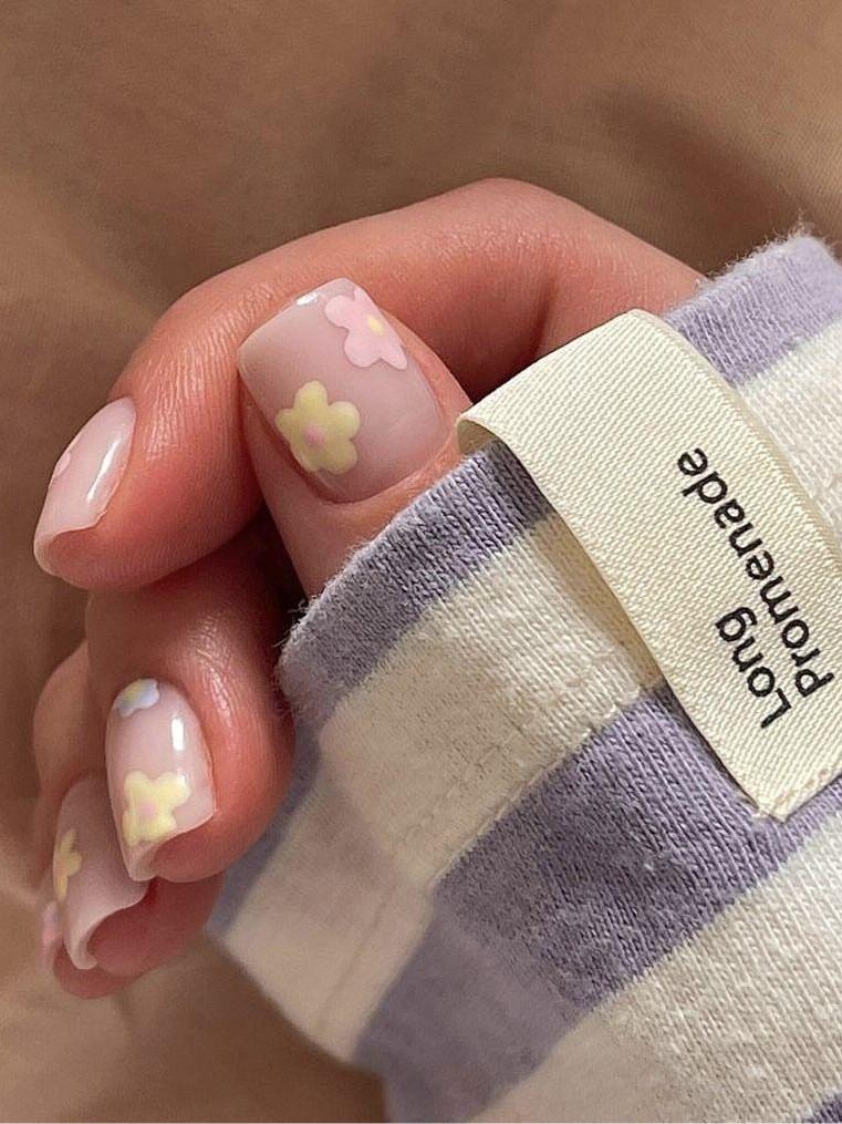 Цветовая гамма выбирается под оттенок кожи и привычные украшения. Нежно-розовые, пыльно-лиловые, кремовые и бежевые цветы хорошо сочетаются с золотыми и серебряными аксессуарами. Для более контрастного эффекта можно добавить тонкие темно-зеленые или серо-коричневые стебли и точки в центре цветков. Если нет желания делать индивидуальную прорисовку, можно использовать слайдеры или стемпинг.