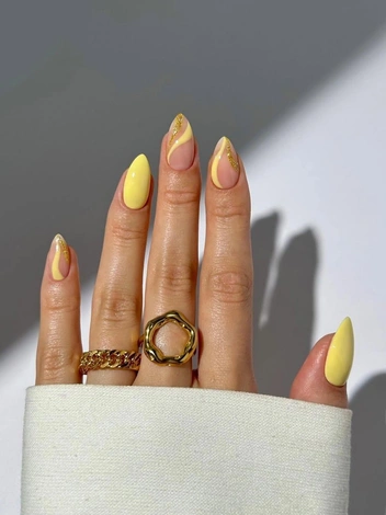Лимонный — сочный и энергичный оттенок, который однозначно приблизит наступление солнечной весенней погоды. Можно выбрать классическое однотонное покрытие, которое выглядит лаконично и стильно. Для тех, кто любит экспериментировать, подойдут варианты с дизайном, например, можно попробовать сочетание лимонного с серебряным. И, конечно же, не забывайте про украшения. Этот дизайн отлично гармонирует с золотыми кольцами и браслетами.