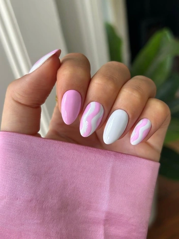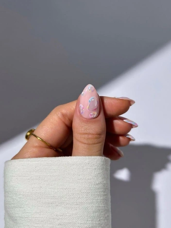 Конфетный маникюр — креативный весенний дизайн ногтей, вписывающийся в стиль coquette core (с англ. — кокетливая эстетика). Цветовая гамма нейл-арта имитирует самые вкусные сладости: только представьте ногти-леденцы, переливающиеся на солнце яркими красками, или градиенты, напоминающие сладкую вату, и узоры, имитирующие карамельные разводы.