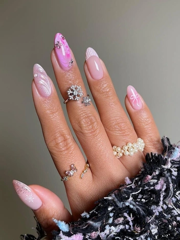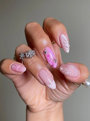 Поэкспериментировав с оттенками розового, вы точно найдете свой идеальный. Может быть, это будет пудровый? Или цвет чайной розы? Не бойтесь добавлять немного креатива: от сердечек до нежного кружева в переплетении с необычной геометрией. Мастера с легкостью воплотят любую вашу идею на одном или нескольких ноготках. А если добавить еще стразы, блестки или головокружительную технику омбре, то такой дизайн точно не оставит вас без внимания (читайте также: Маникюр «фуксия»: 7 ярких дизайнов ногтей на Новый год 2025).