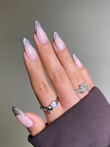 Самым популярным дизайном ногтей является французский маникюр, и в новогодний калейдоскоп нейл-дизайнов на этот раз попал металлический френч. И здесь уже вам решать, каким ему быть — золотистым, серебряным или бронзовым.
